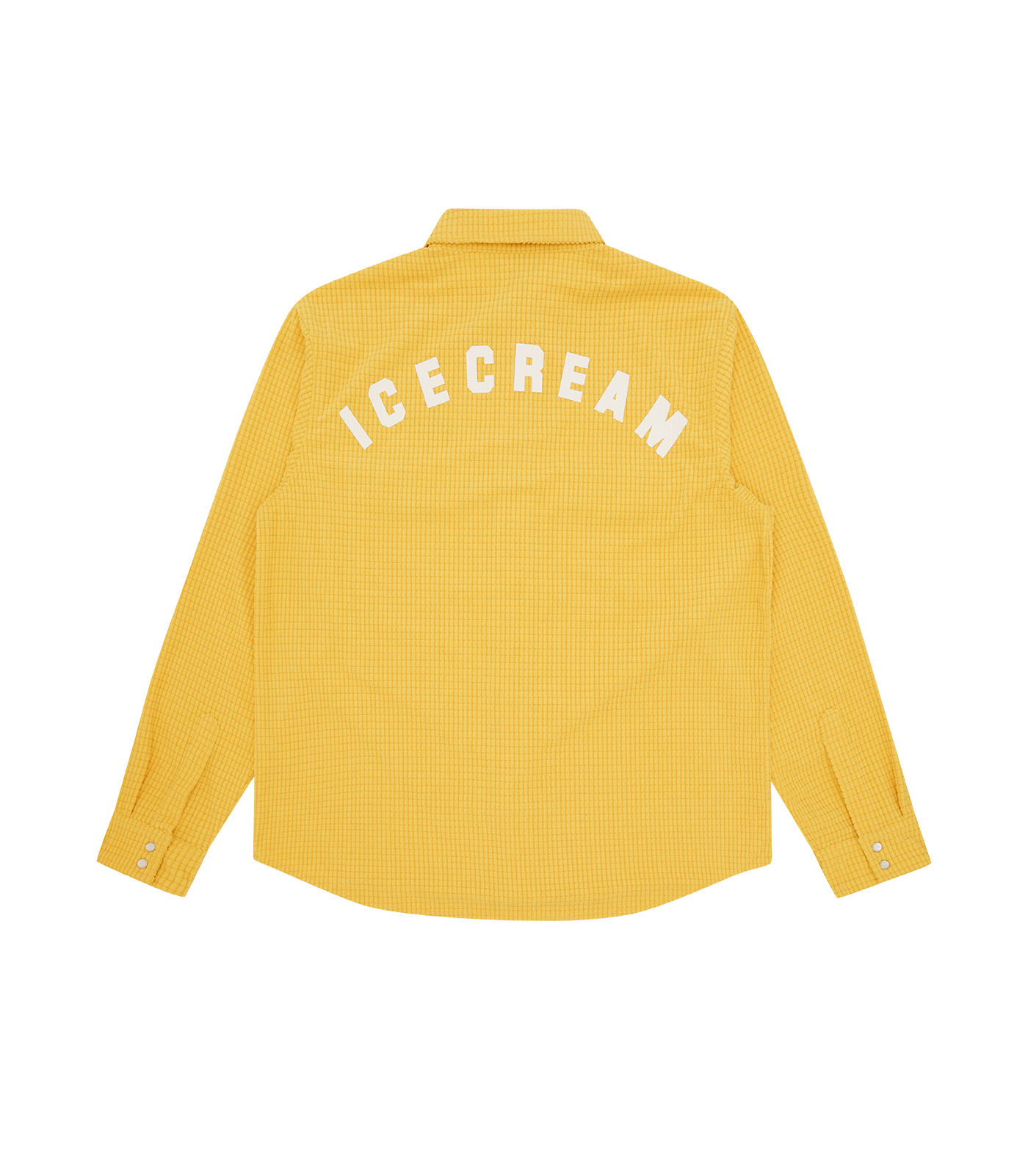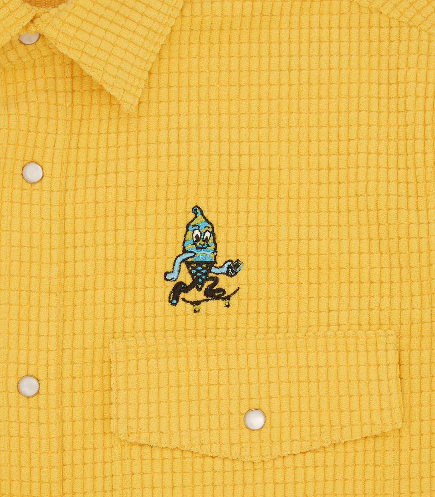 ICECREAM Spring '25 - Button-down Soft Cord Shirt featuring an embroidered Team EU Skate Cone chest signet, snap buttons and ICECREAM logo at back.