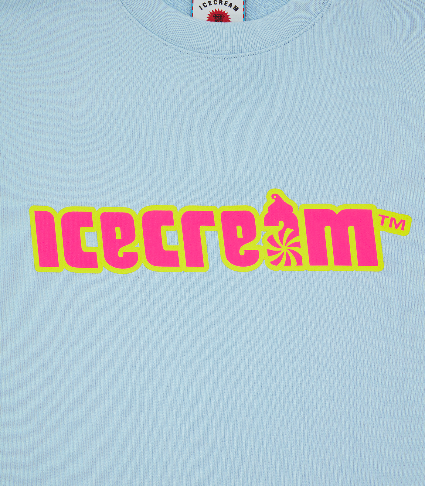ICECREAM Spring '25 - This Soft Serve Crewneck presents the screen printed ICECREAM soft serve logo on the chest and the IC signet at back neck.