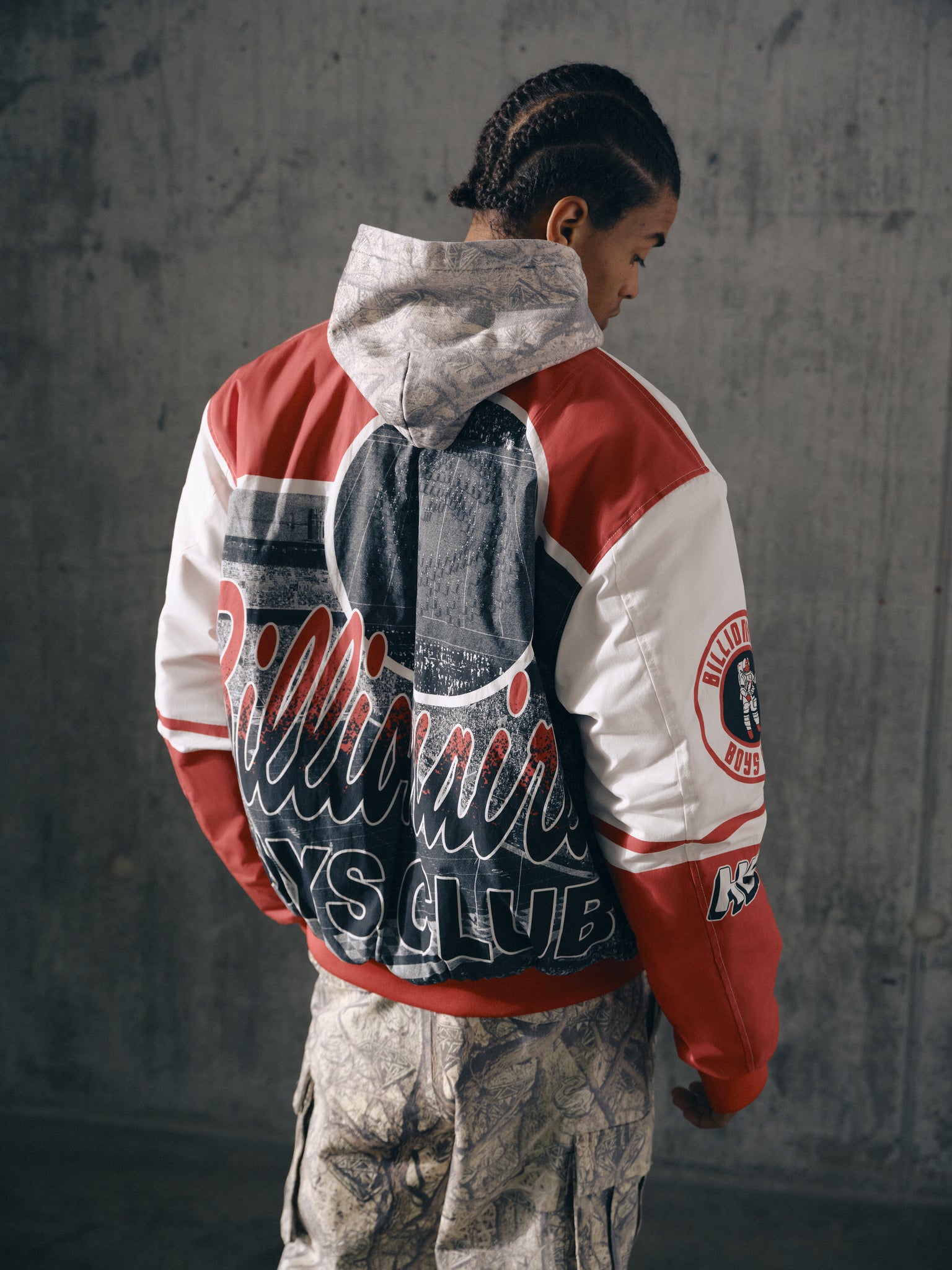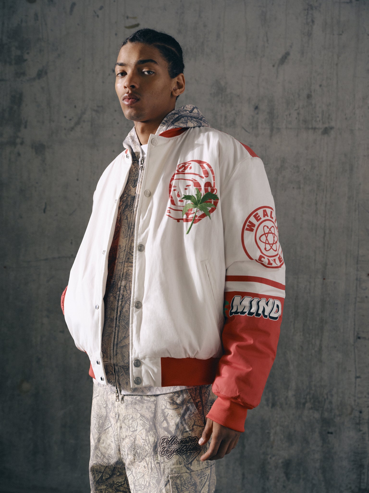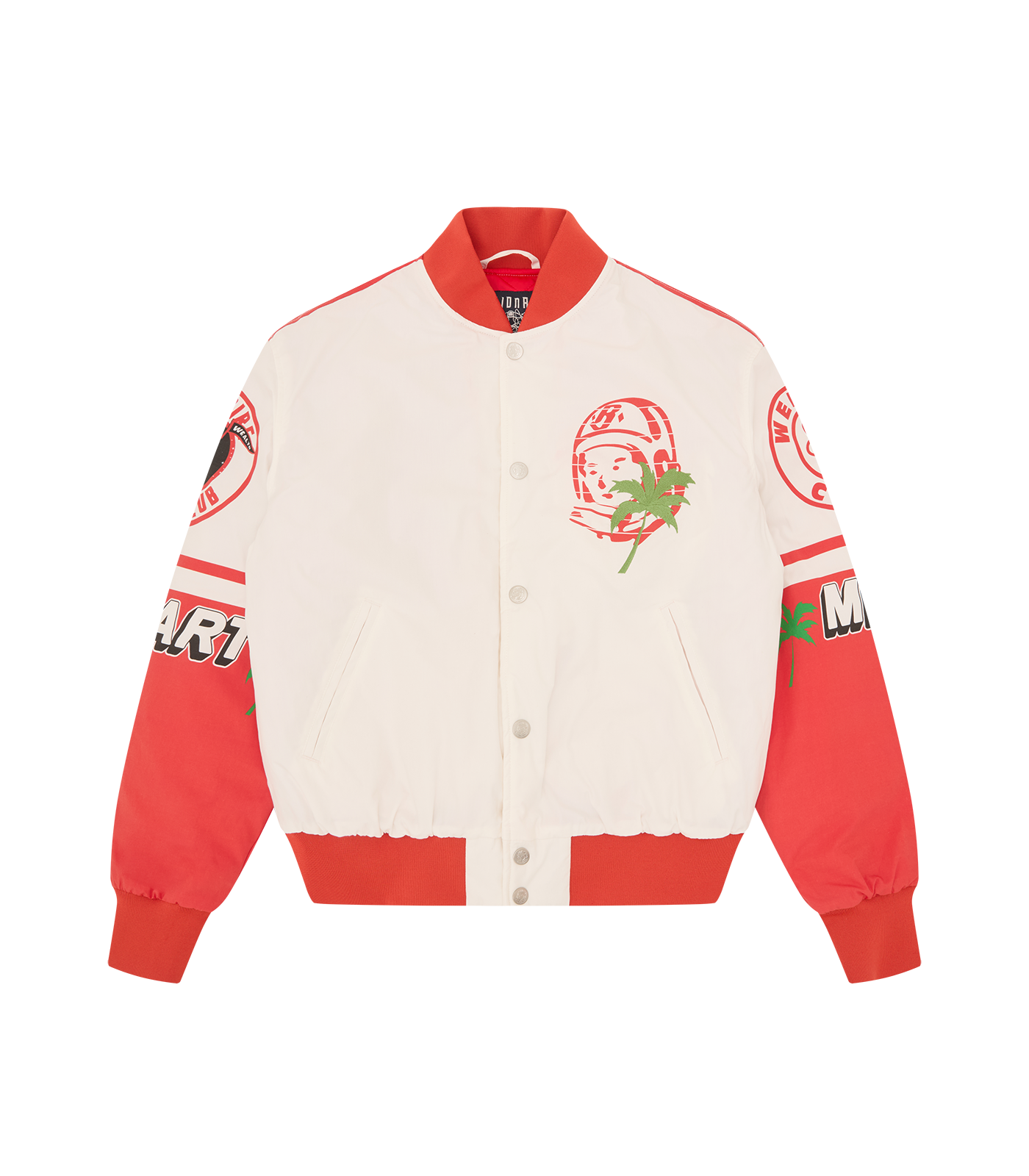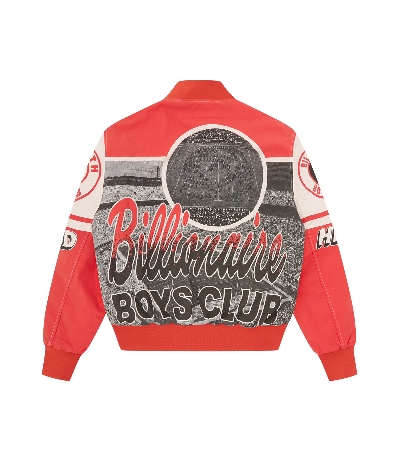Billionaire Boys Club Pre-Spring '26 - With a classic bomber varsity jacket fit, the Stadium Bomber Jacket presents signature Billionaire Boys Club appliqués all over the body and sleeves; it is detailed with an embroidered palm at chest.