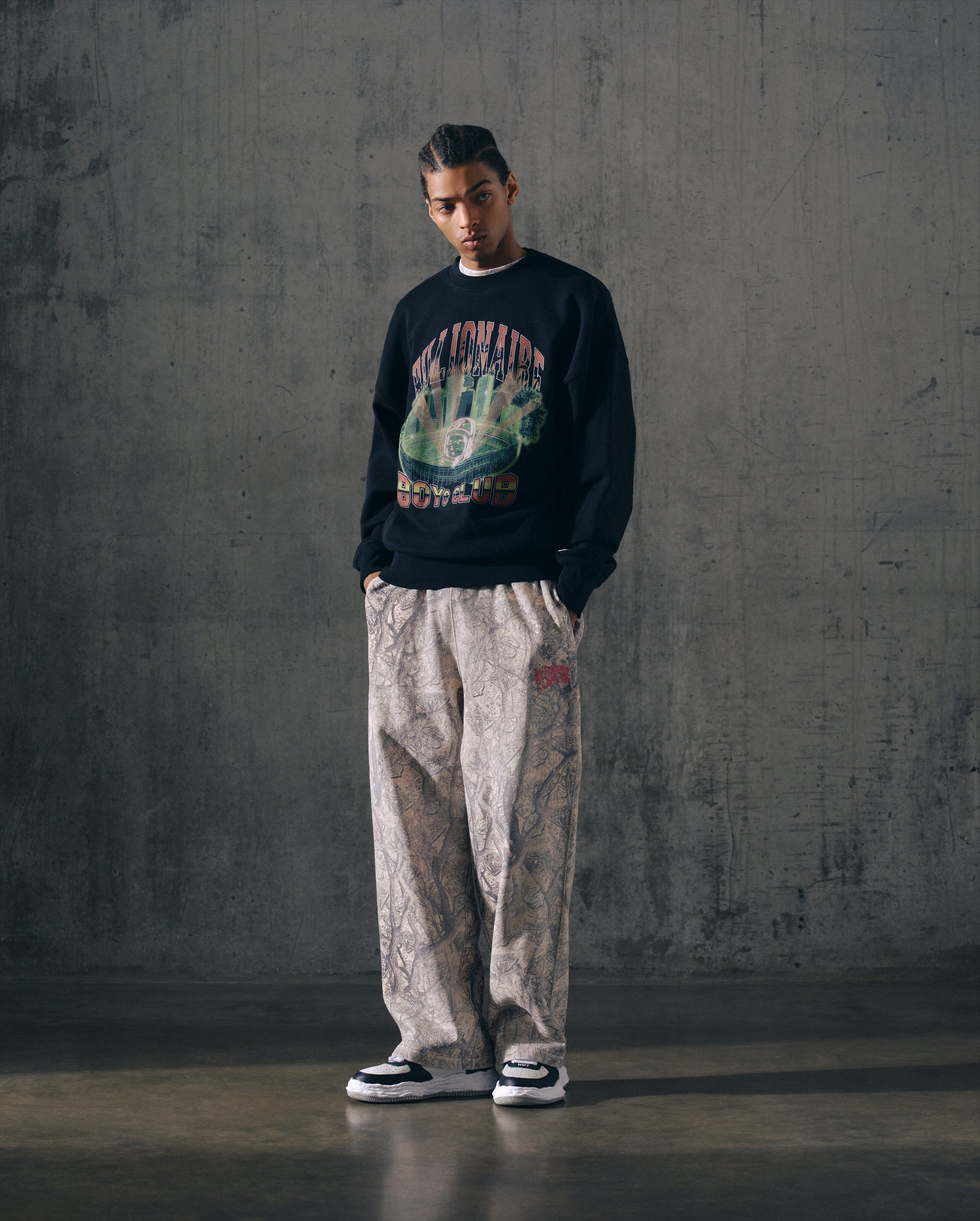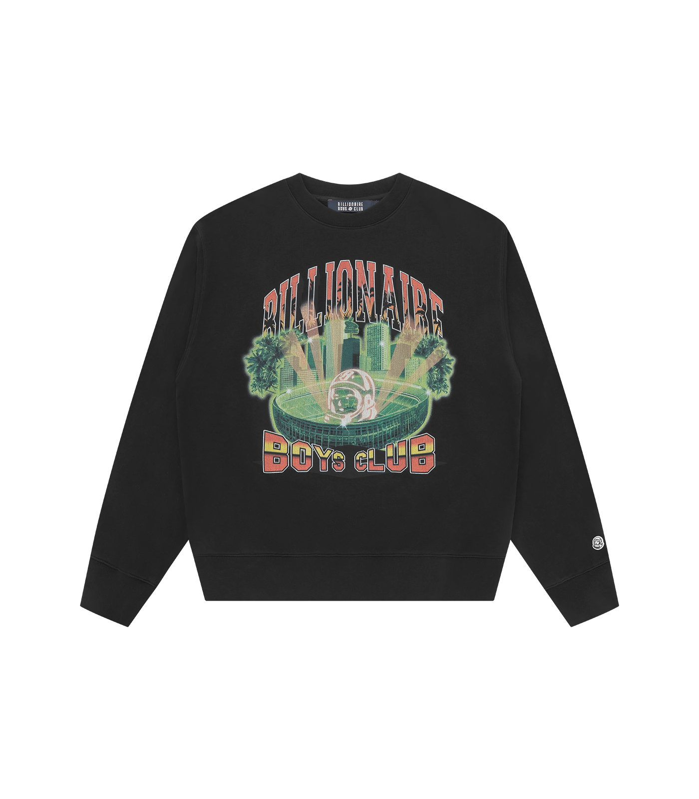 Billionaire Boys Club Pre-Spring '26 - Stadium Oversized Crewneck presenting a photo printed Billionaire Boys Club graphic on the front. Finished with the standing astronaut on the back neck and astro tab on the left sleeve. It comes with an oversized fit.