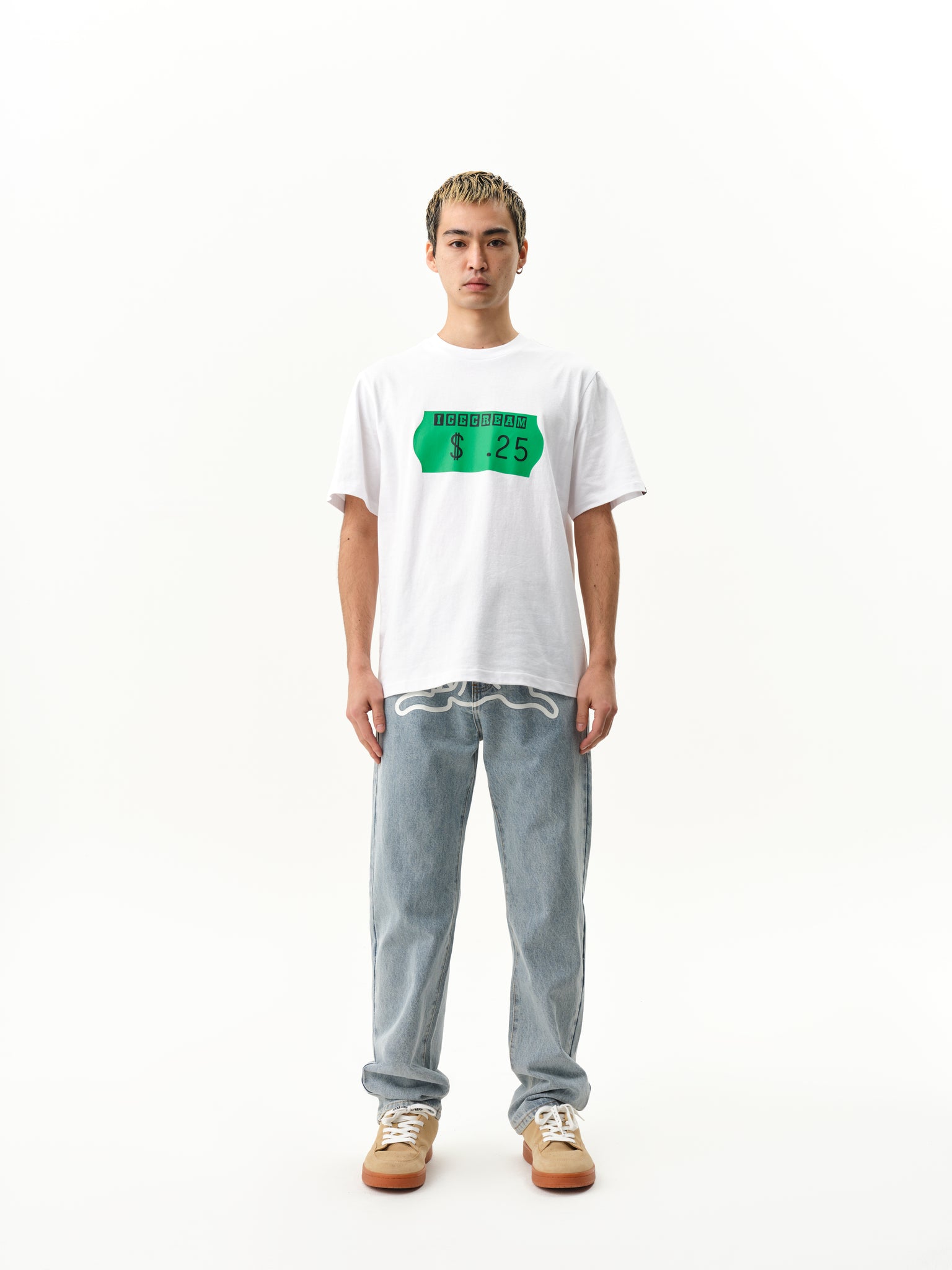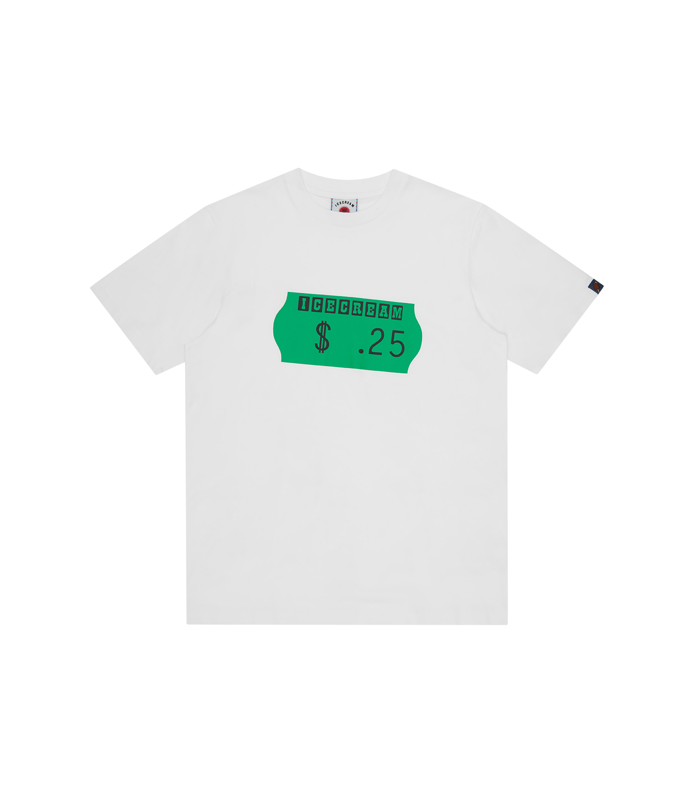 ICECREAM Fall '25 - The Sticker T-shirt presents a printed ICECREAM sticker graphic on the front and IC signet on back neck.