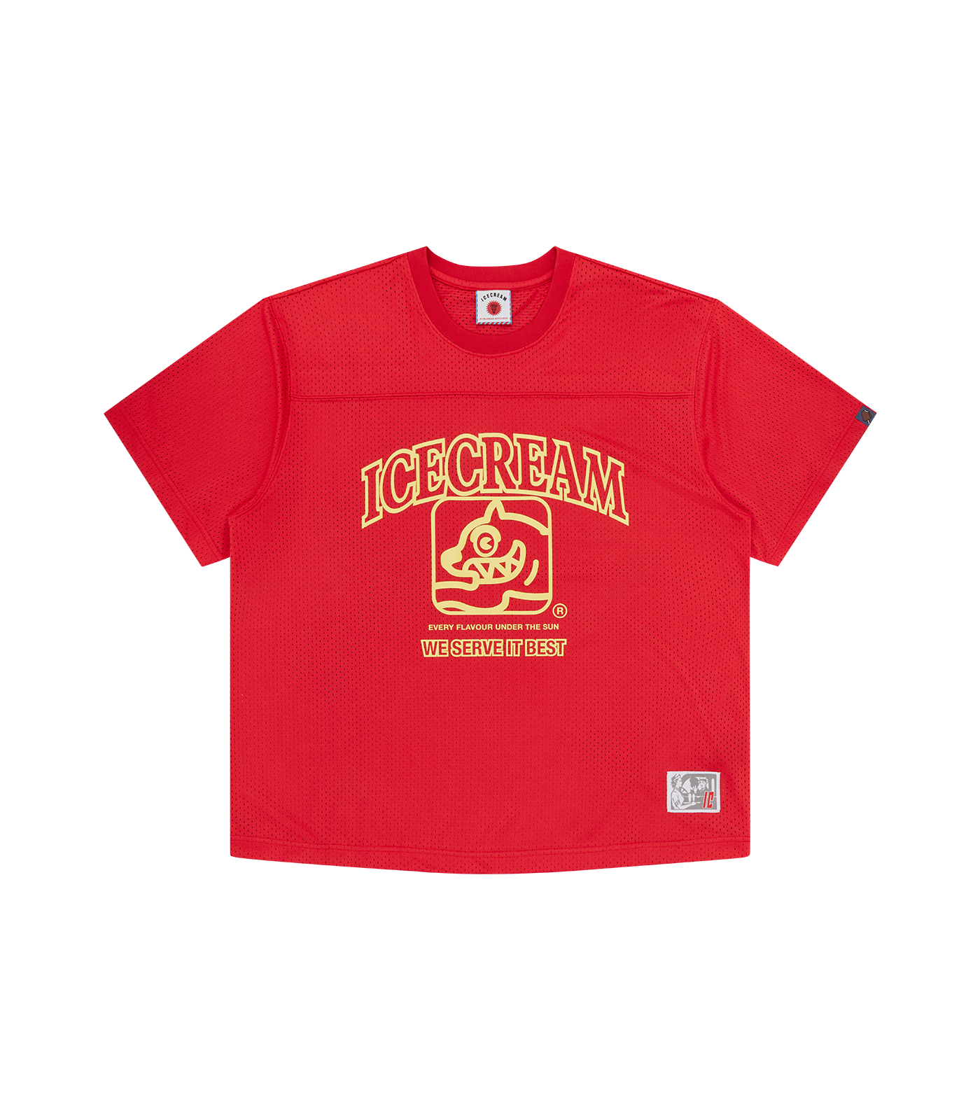 ICECREAM Fall '25 - This Team Football Shirt presents a vintage ink printed ICECREAM artwork at the front and it comes with a mesh body for extra-breathability.
