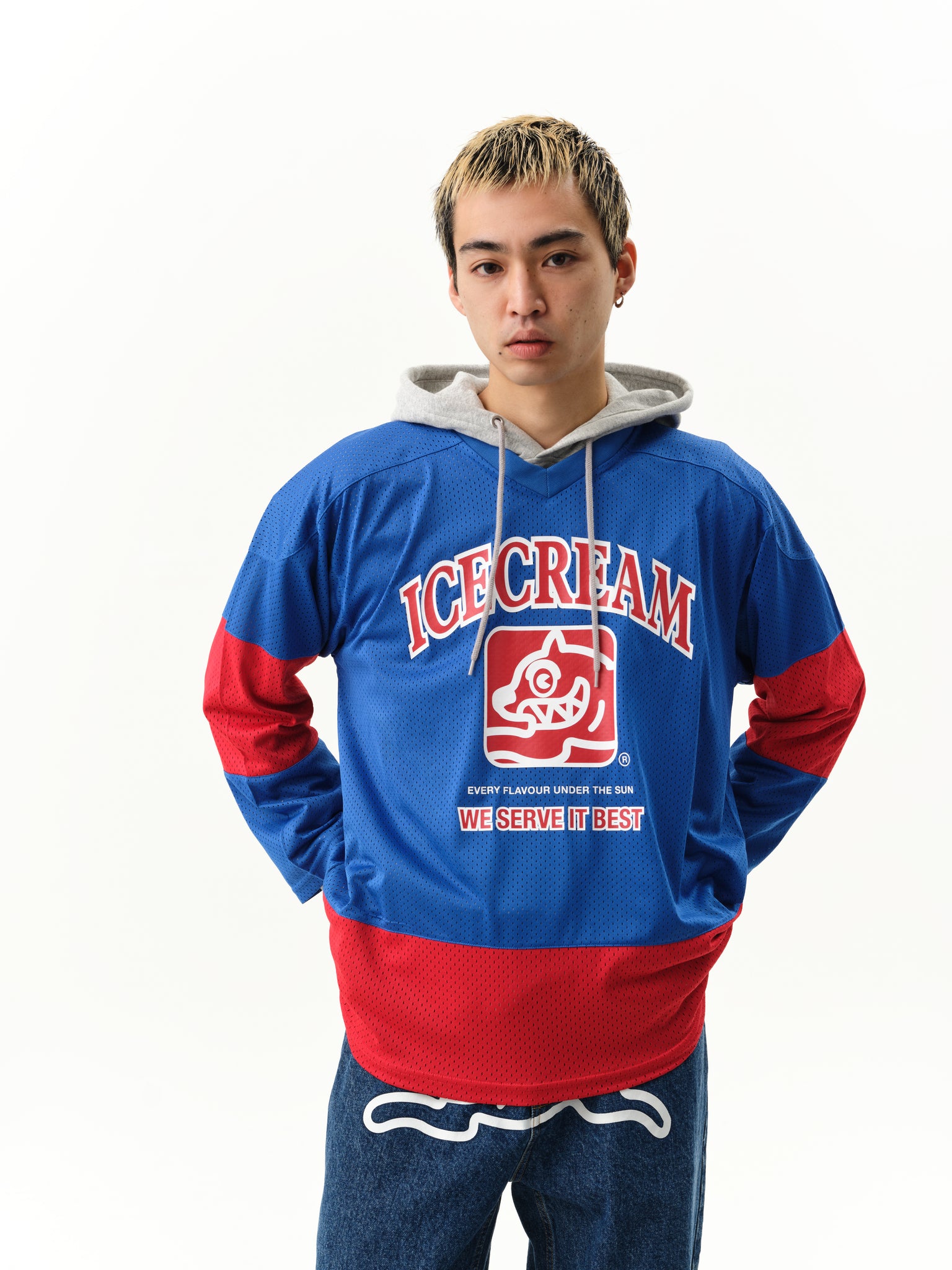 ICECREAM Fall '25 - This Team Hockey Shirt presents a vintage ink printed ICECREAM artwork on the front and ICECREAM woven label on the lower front.