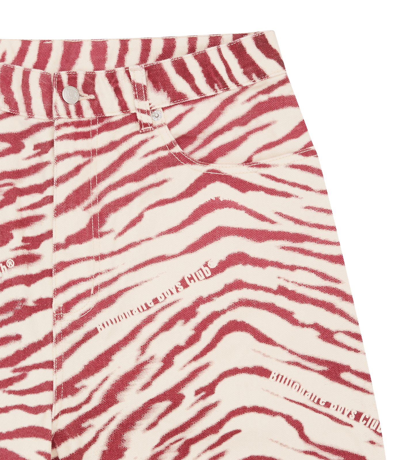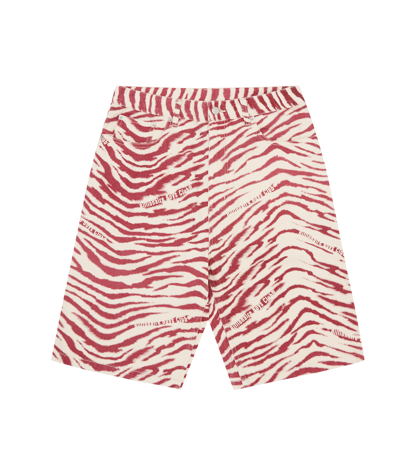 Billionaire Boys Club Pre-Fall '25 - Zebra Print Denim Shorts presenting an all-over zebra pattern, detailed with Billionaire Boys Club logos. Matching denim jacket available.